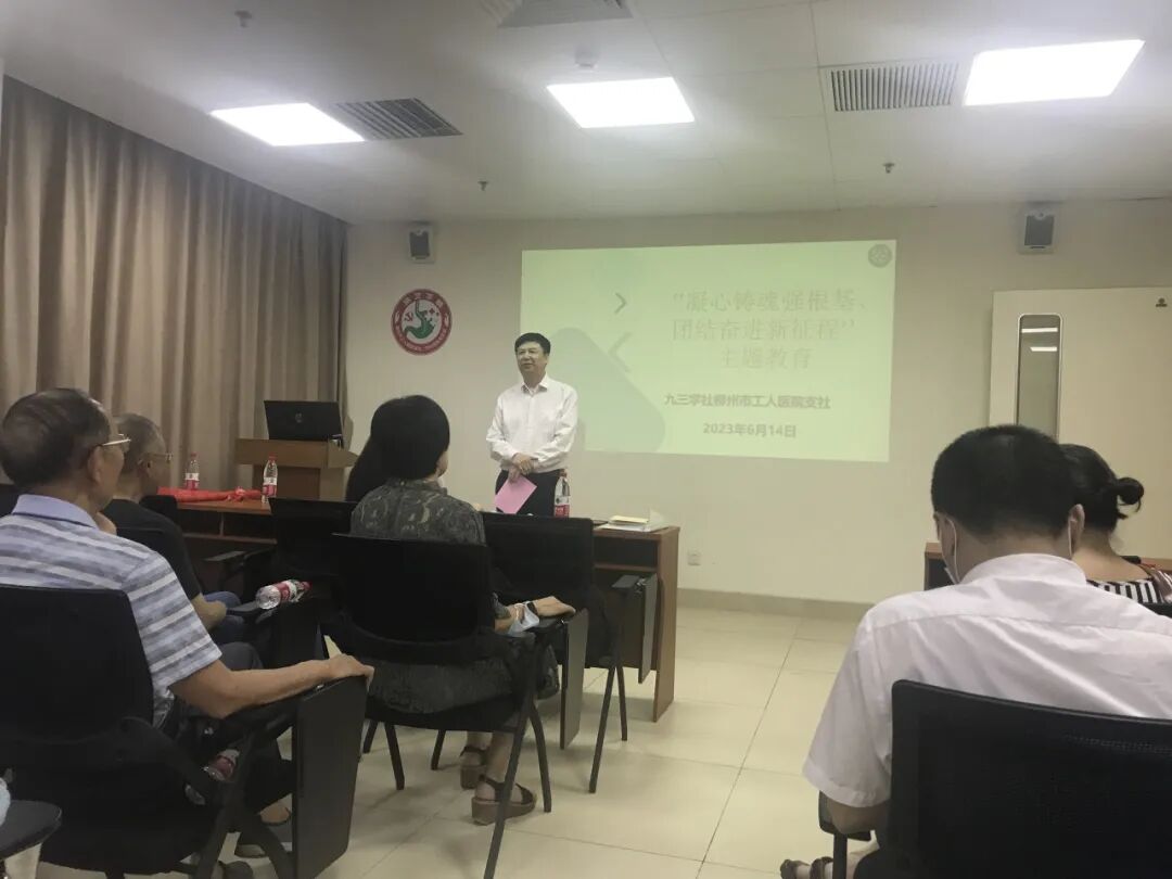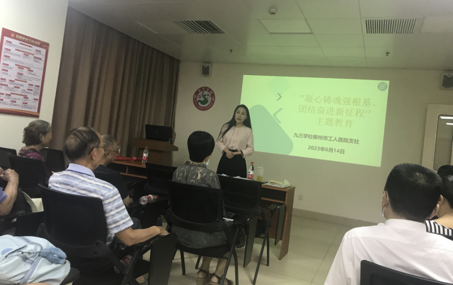 6月14日,九三学社柳州市工人医院支社开展“凝心铸魂强根基、团结奋进新征程”主题教育组织生活会。市工人医院党委副书记梁茂元,社市委组织科科长杨柳及工医支社社员共20余人参加学习。