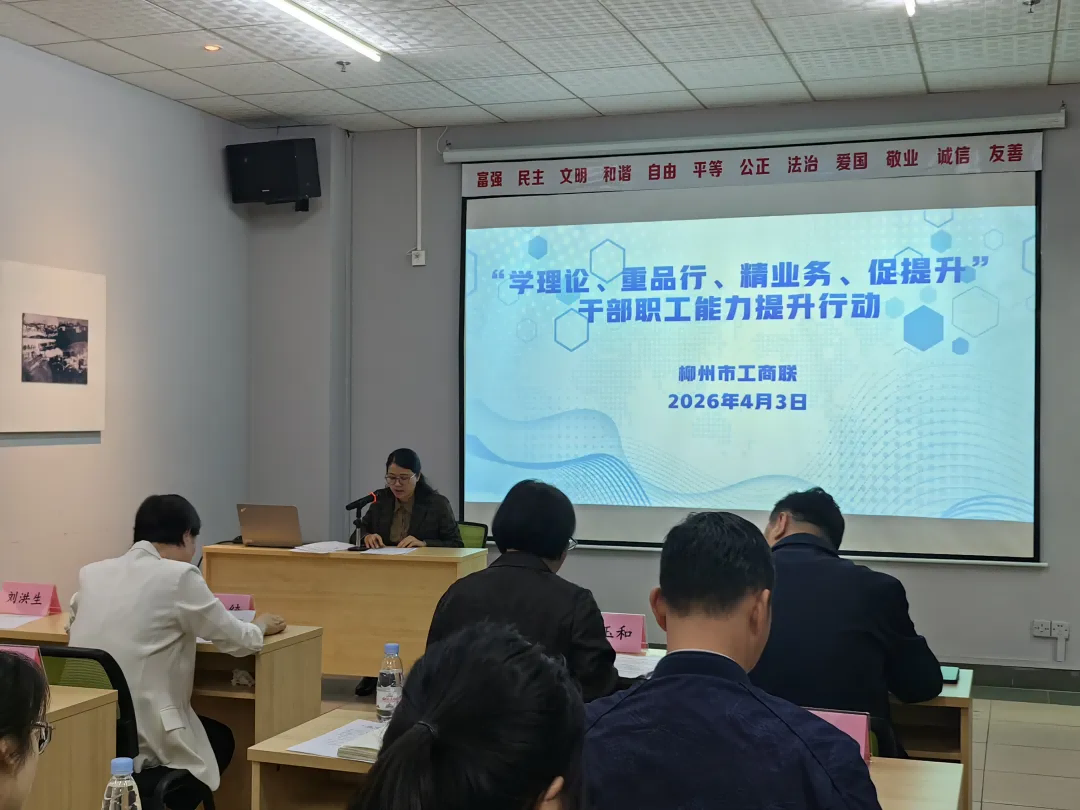 4月3日,市工商联2026年“学理论、重品行、精业务、促提升”干部职工能力提升行动开班式暨第一期交流活动在市档案馆培训室成功启动。市政协副主席、市工商联主席莫玉和,市委统战部副部长、市工商联党组书记黄绮出席活动,分别作总结讲话和开班动员。