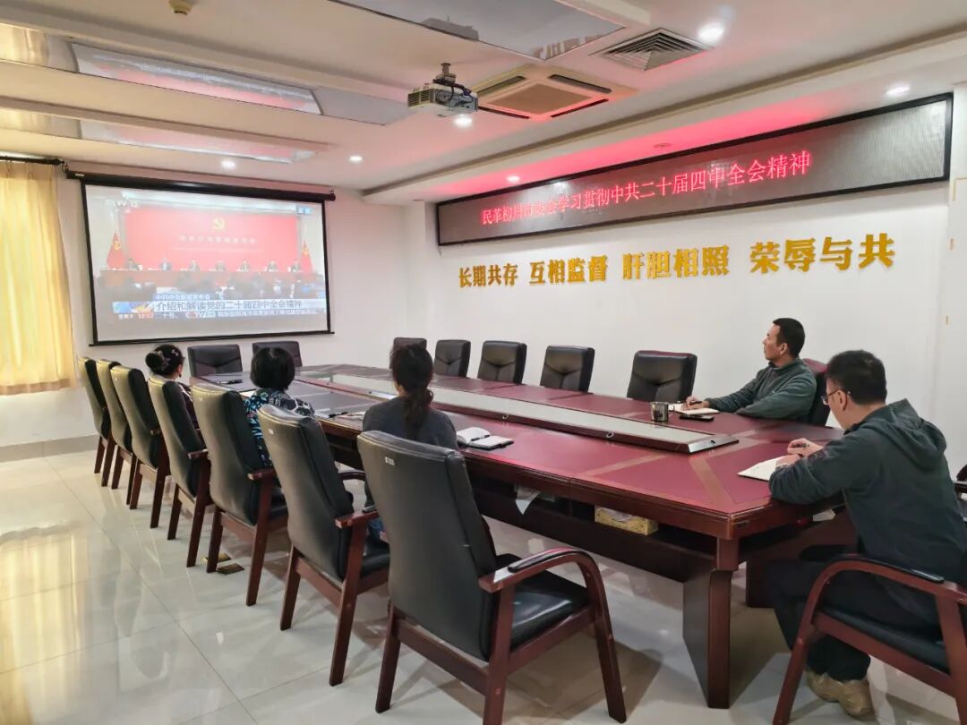 10月24日上午10时,中共中央举行新闻发布会,介绍和解读中共二十届四中全会精神。民革柳州市委会机关集中收听收看新闻发布会直播,第一时间深入学习全会精神。