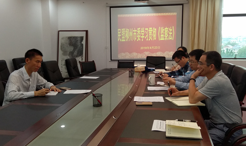 4月23日,民盟柳州市委召开专题学习会,组织机关全体干部学习《中华人民共和国监察法》。会议传达了柳州市纪委十二届五次会议精神,发放了学习资料,观看了有关《监察法》的普法视频。罗革生主委在会上强调,民盟柳州市委机关要高度重视对《监察法》的学习,加强组织领导,把学习《监察法》和学习十九大精神、反“四风”结合起来抓,从切实增强“四个意识”和“四个自信”的高度,深刻领会监察法的精神实质和精髓要义。