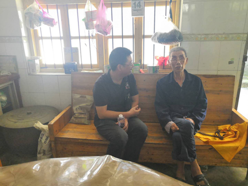 副调研员丁昌东与罗建功老人交流