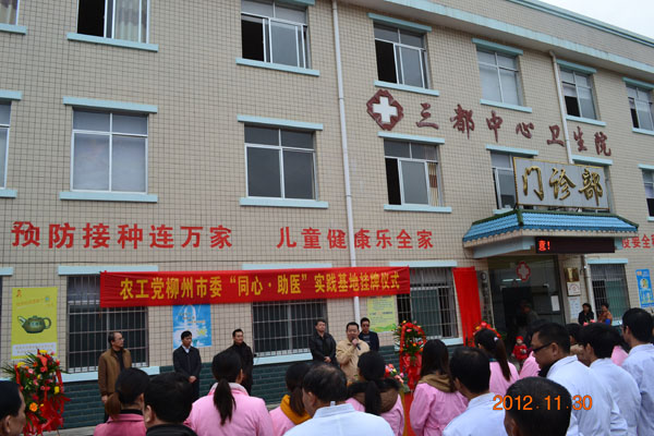 为深入贯彻落实党的十八大精神,按照“思想上同心同德、目标上同心同向、行动上同心同行”的总要求,紧扣中共柳州市第十一次党代会提出的建设“五美五好”柳州的战略目标,充分发挥我委人才荟萃,智力密集的资源优势,在中共市委统战部的帮助指导下,经过与三都镇中心卫生院协商,我们确定三都镇中心卫生院为农工党柳州市委“同心.助医”实践基地,这必将为我委在开展打造“同心”品牌的实践中增添新的内涵、注入新的活力。
