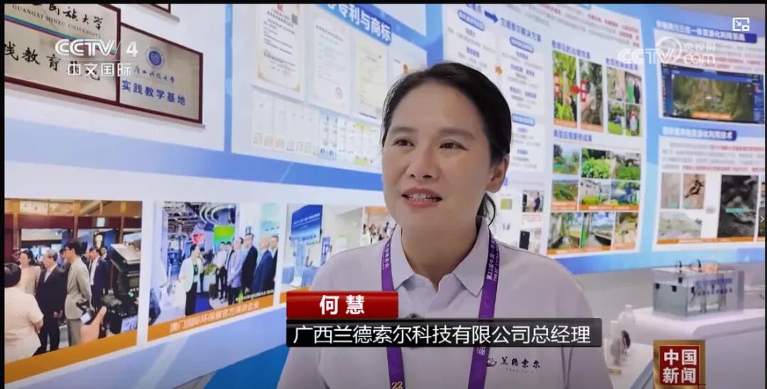 在绿色低碳展区,农工党柳州市河南支部副主委、广西兰德索尔科技有限公司总经理何慧带来的分散式农村污水一体化处理及资源化利用智能处理系统,养殖粪污三位一体资源化利用系统,固体废弃物资源化利用技术等新技术、新产品成为展会焦点,其本人接受中央4台(中文国际)《中国新闻》采访。据了解,何慧参展的主题为“科技赋能生态 智慧守护家国”,精准对接本届绿色低碳展的“数智赋能绿色发展 共筑中国—东盟低碳未来”主题。