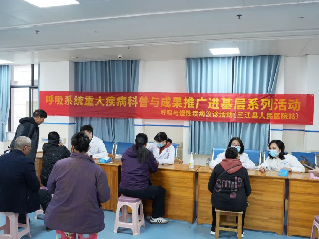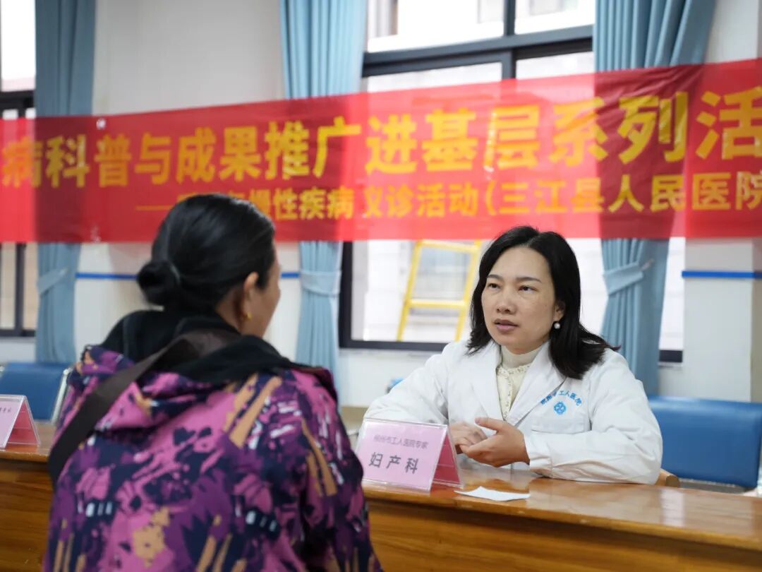 为深入贯彻落实“健康中国”战略部署,提升基层医疗水平,普及呼吸系统重大疾病及慢性疾病管理知识,11月18日,来自广州国家实验室、农工党广州国家实验室支部、中山大学孙逸仙纪念医院的专家队伍赴柳州市三江县人民医院开展“呼吸系统重大疾病科普与成果推广进基层系列活动”之呼吸与慢性疾病义诊,农工党柳州市工人医院总支主委、市工人医院妇科肿瘤五病区主任韦露薇参加义诊。
