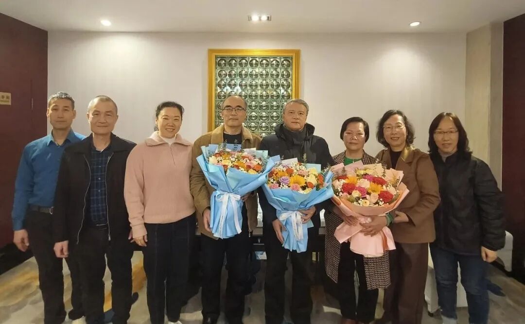 何敏、胡兰等为关建国、张美芳、柳元送上鲜花祝福