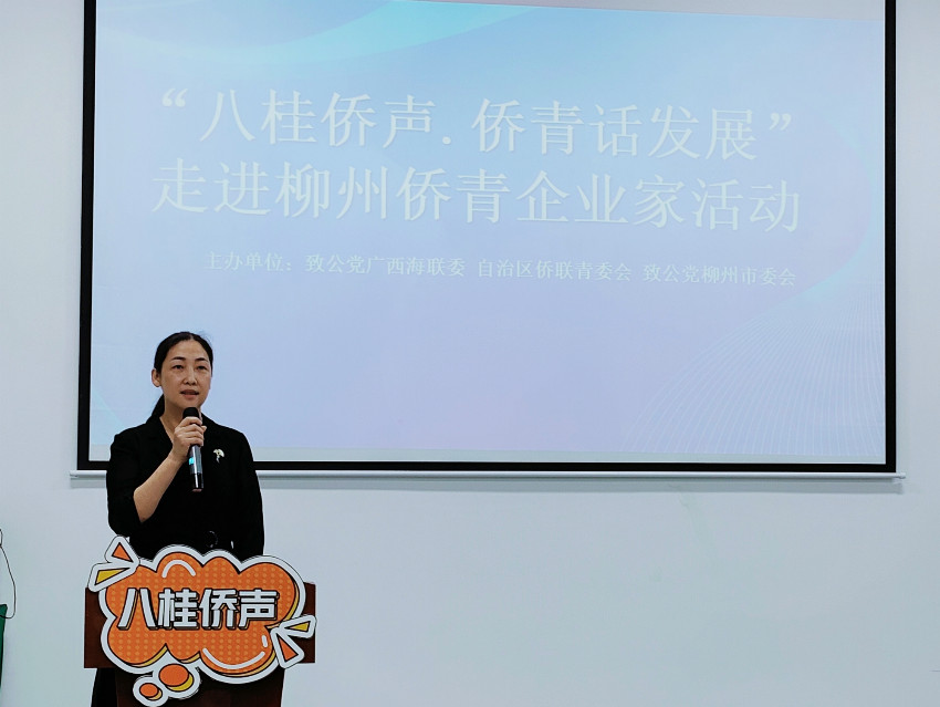 朱霞代表致公党柳州市委会对侨青企业家的到来表示欢迎。她在讲话中表示,参加活动的各位企业家大部分都具有侨海背景,拥有丰富的国际视野和跨文化经验,在民营经济发展中有着独特的优势和作用,相信这些优势将成为带动经济复苏和发展的重要力量。希望通过活动给企业家们提供一个交流的平台,激发创新思维,资源共享。致公党柳州市委会也将继续发挥自身优势,积极推动海外联谊和对外交流工作,通过开展活动,做好服务,激发党员活力,进一步凝聚侨心侨智侨力,以新面貌、新气象不断开创党派工作新局面。