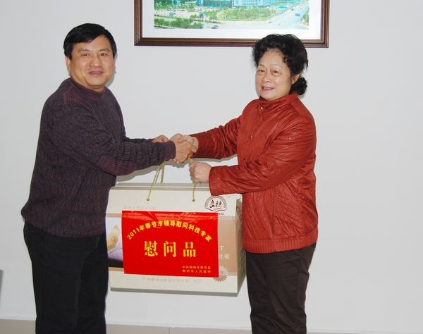 覃泽芬副主席给两位科技拔尖人才送上慰问品