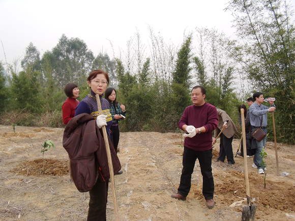 植树节这天,城中区政协机关干部参加了城中区组织的植树节活动——到环江村为村民种植柚子树。