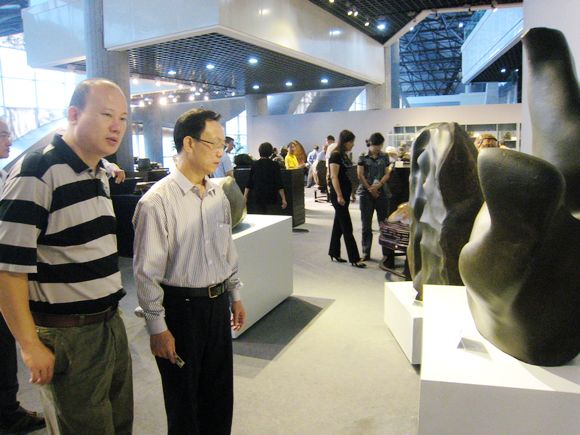 图2:参观奇石馆。(右为海城区政协主席许光远,左为城中区政协副主席戴翔。)
