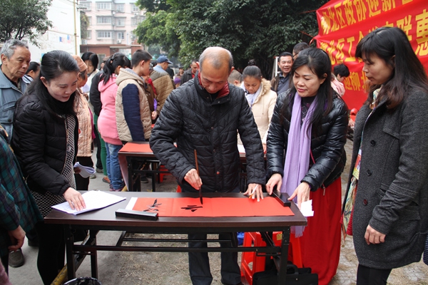 015年新春佳节来临之际,2月13日,柳北区政协组织政协第一委员小组的委员到辖区雀儿山街道前锋西社区开展义务写春联送春联活动。