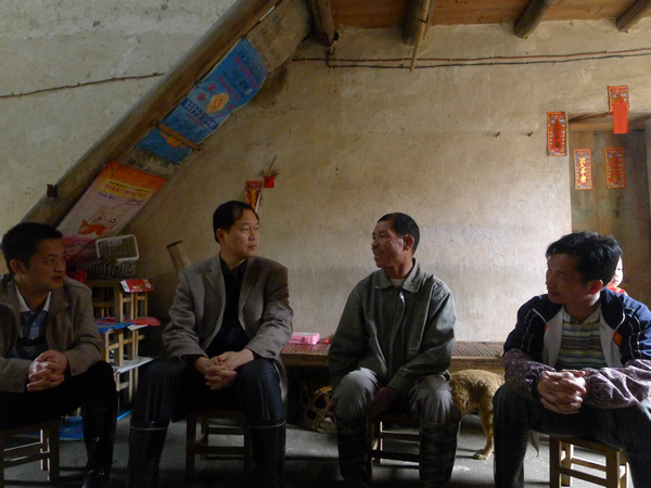 马武立副主席(左二)在帮扶对象梁电开(右二)家中了解情况