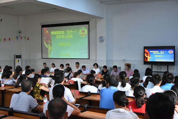 9月5日,柳城县政协在柳城中学举行“五个一”助学育人活动捐助仪式。县政协主席钟诚,副主席韦燕双、秦宇参加捐助仪式。