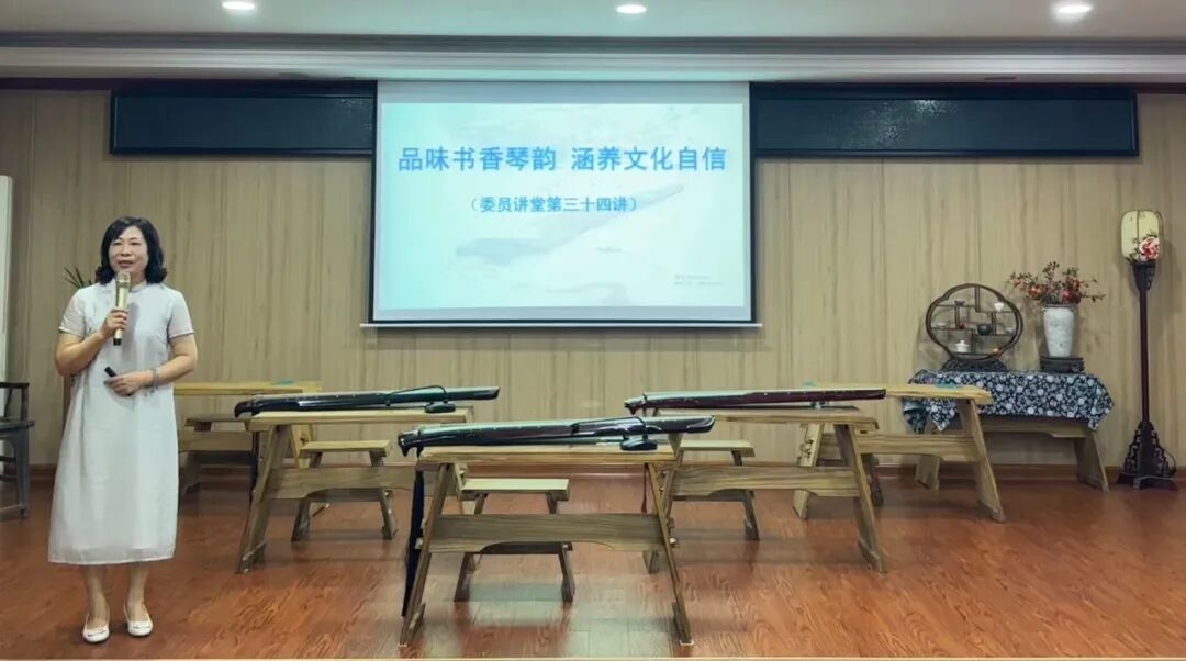 在精彩的讲述之间,柳清风琴舍的琴友还现场演奏了《平沙落雁》《卧龙吟》《流水》等多首经典古琴曲目。时而潺潺如溪,时而浩荡如江河的琴音,让听众仿佛置身于山水之间,感受着古人寄情山水、感悟天地的哲思。一曲专为中秋佳节演奏的《良宵引》,更是将月夜静谧、人月两圆的意境表现得淋漓尽致,赢得了全场热烈的掌声。委员们纷纷表示,这不仅是一场听觉的盛宴,更是一次心灵的洗礼和文化的熏陶,让这个中秋节前夕显得格外有意义。