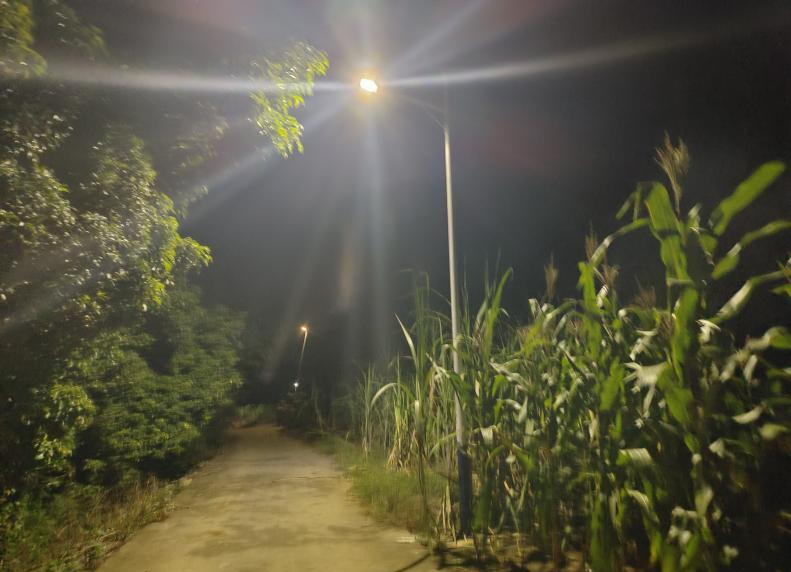 提案得到县政协高度重视,随即联合多部门沟通协调,六塘镇同步向县农业农村局申请项目资金,成功争取到专项支持用于道路照明设施建设。工程于2025年6月16日正式开工,施工方高效推进设备安装、调试等工作,8月5日顺利通过验收,30盏崭新的太阳能路灯正式交付使用,如同“夜空中的星星”照亮了村民的出行路。