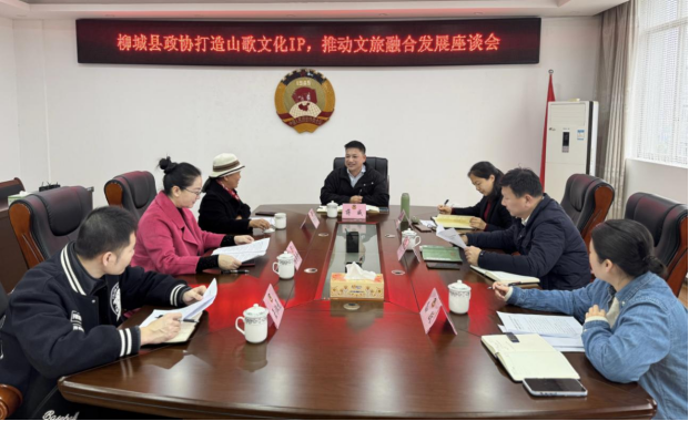 为激活山歌文化的时代价值,探索文旅融合新路径,1月16日,柳城县政协主席蒋威在四楼主席会议室主持召开“打造山歌文化IP,推动文旅融合发展”座谈会。县政协副主席莫春昭、梁家崧参加座谈。