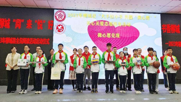 在此前的学雷锋活动中,组委会向柳城县中小学生广泛征集微心愿,在启动仪式上覃雨佳、宁靖等10位认领人对照微心愿愿望表,现场兑现了部分微心愿。