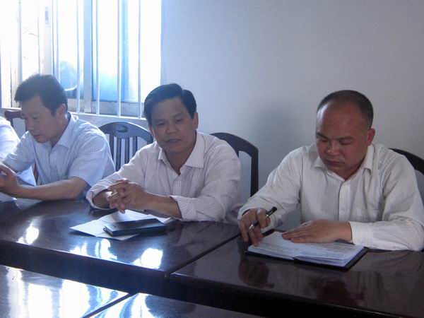 图一:视察组组长韦正峰(中)主持座谈会,左一为视察组副组长何新明,右一为视察组副组长刘明信。