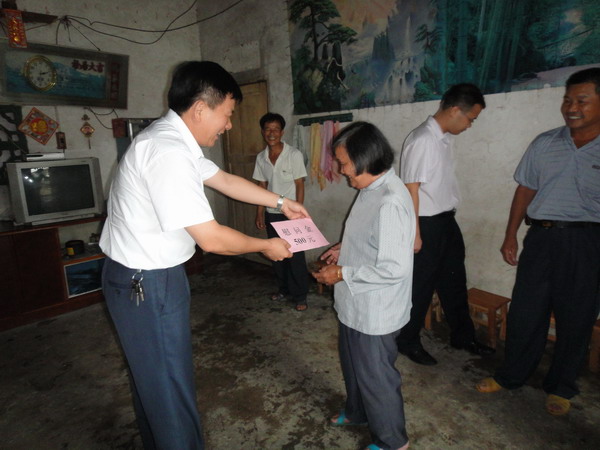 6月30日下午,在建党九十周年来临之际,县政协党组书记周少安深入到里高镇保仁、里高、板六等村走访慰问基层党组织和困难党员,给他们送去党组织和政府的关怀和温暖。冒着大雨,县政协党组书记周少安分别来到困难党员谭兆恒、韦建荣、韦桂英的家中。周少安感谢这些困难党员为党的事业发展做出的贡献,嘱咐他们要保重身体,鼓励他们要坚定信心,老有所为、老有所乐,为新农村建设多提好的意见和建议。周少安和里高镇党政负责人分别为困难党员送上了慰问金和慰问品。