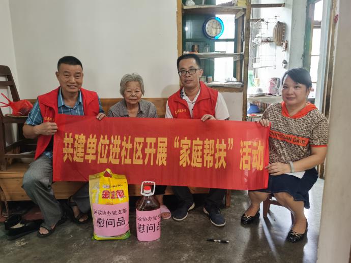 联席会后,共建单位深入到社区的住户家中开展家庭帮扶、“点亮微心愿”和重阳节前慰问老人等志愿服务活动,采用一个“四联双报到”单位结对两户家庭的“一对二”结对帮扶方式进行,同时,还给社区的部分独居老人赠送米和花生油,使老人们感受到党组织的温暖。