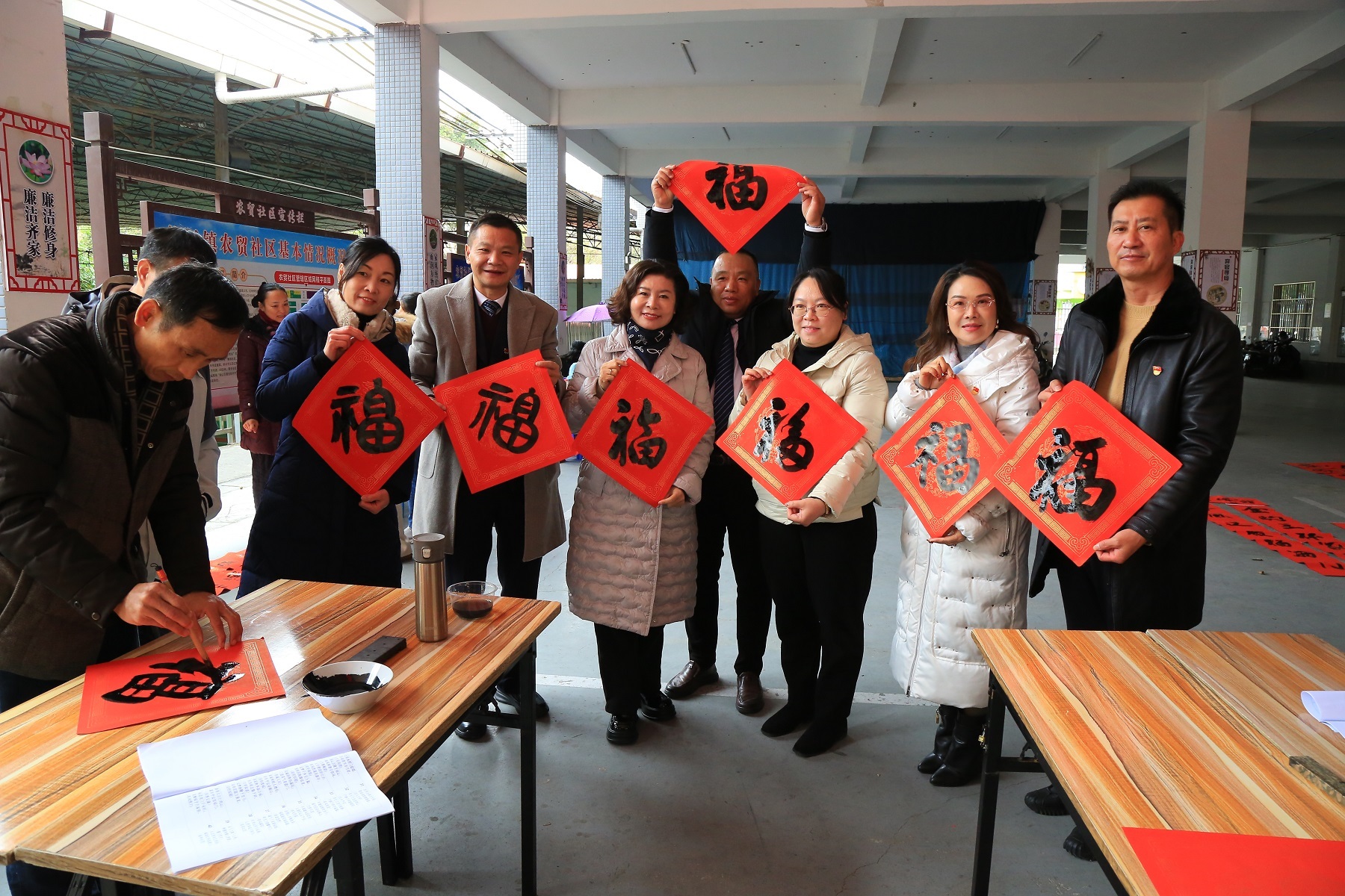 此次活动不仅限于文化下乡,更延伸为一场贴近民心的暖心服务。区政协委员、广西欧泰装饰公司董事长黄远花在积极参与书写赠送春联的同时,主动延伸履职触角,将温暖送到更需要关怀的群体身边。她带领公司员工及志愿者,专程前往柳江区养老院、柳江区易地扶贫搬迁安置点,开展“巾帼暖冬行,情系夕阳红”关爱困境老人活动,为老人们送去了大米、花生油等实用生活物资,并与他们亲切交谈,询问生活起居和健康状况,用实际行动诠释了政协委员服务社会、服务群众的公益美德和社会担当。