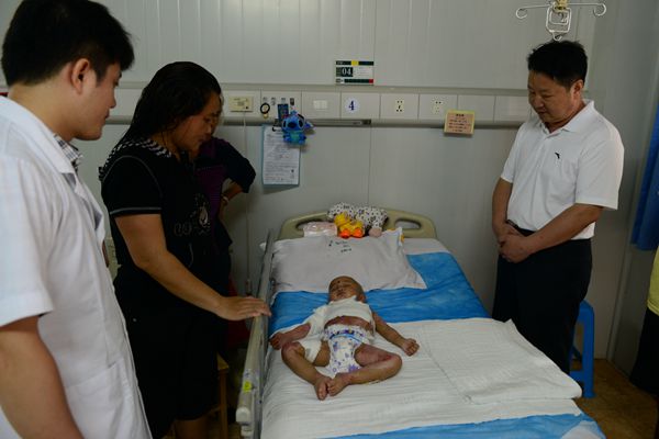 6月7日晚,鹏鹏一家三口在柳州市蝴蝶山路西一巷的家中,被爆炸的煤气烧伤;而年仅1岁8个月的小健君,于5月17日在来宾市金秀瑶族自治县家中不慎被开水从头浇下烫伤。两家患者目前正在恢复阶段,患儿小健君经四次手术,移植的皮肤,大部分亦已存活。鹏鹏较其父母煤气烧伤创面大,经过这段时间的精心治疗,四肢大部分创面得到有效愈合。