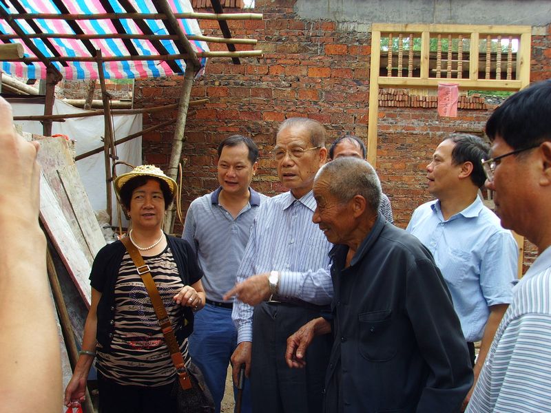 图一:张声震老书记(左三)与当地群众亲切交谈,饶冬生副主席(右二)陪同。