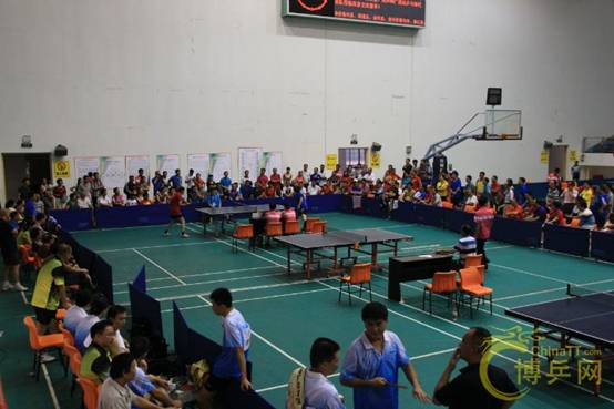 图一为湘黔桂三省(区) “华海木业杯” 乒乓球邀请赛比赛现场