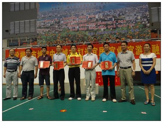 9月12日晚8时,由融安县政协主办,融安县文体局、融安县乒乓球协会承办,融安华海木业有限公司协办的 “2013年湘黔桂三省(区)十七县(市站)‘华海木业杯' 乒乓球邀请赛”在该县文体中心隆重开幕。鹿寨县政协主席袁子强、副主席成荣胜率领鹿寨县乒乓球代表队参加了开幕式。