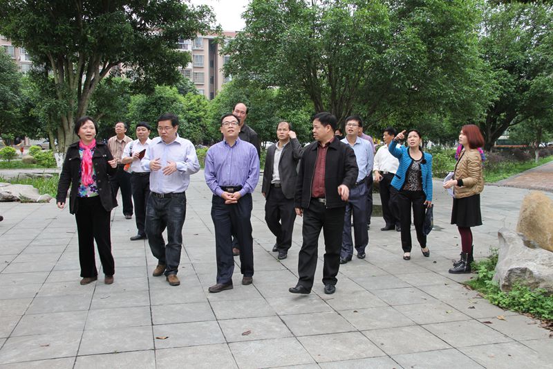 图二:考察团实地参观考察鹿寨县城南新区桂花园。