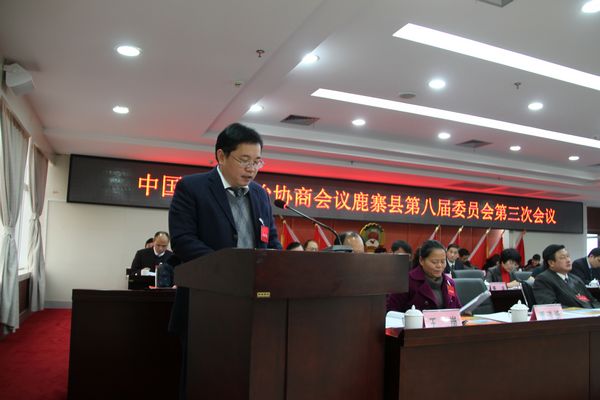 图六:县政协副主席成荣胜在会议上作提案工作报告。