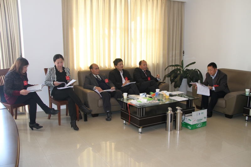 1月22日下午14:30,出席政协鹿寨县第八届委员会第四次会议的政协委员按组别进行讨论,县政协主席袁子强、副主席饶冬生、成荣胜、覃清培、王岗分别出席讨论会。
