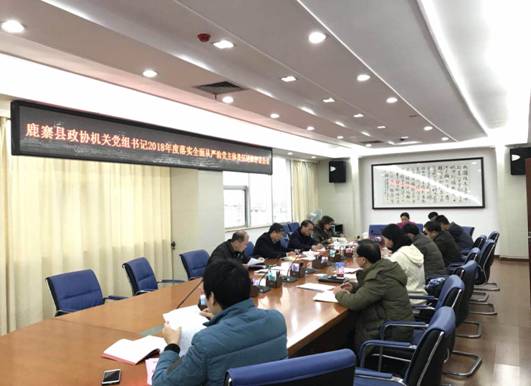 图为鹿寨县政协机关党组召开2018年度落实全面从严治党主体责任述责评议会议现场。