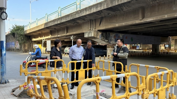 蒙广远副主席实地查看了广场路9-3号至38号路段施工现场的工程进展。该路段一到雨季就会发生道路严重积水现象,给过往行人和车辆造成极大的不便,存在交通安全隐患。目前该维修项目已完成大部分工程量,计划本月底前可正式投入使用,届时将有效解决该路段积水问题。