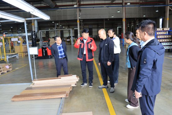 考察组一行先后深入广西鹿寨桂中现代林业科技产业园展厅、广西大自然智能家居有限公司、广西一家美人造板有限公司及鹿寨智慧林业零碳循环产业园,实地察看园区规划布局、建设运营、企业生产加工、产业链协同等情况,详细了解鹿寨县在林业资源整合、产业集群发展、绿色低碳转型、数字平台赋能等方面的创新实践与经验做法