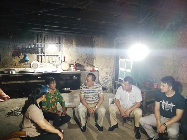 县政协副主席潘凌(右一)在贫困户家中夜访场景