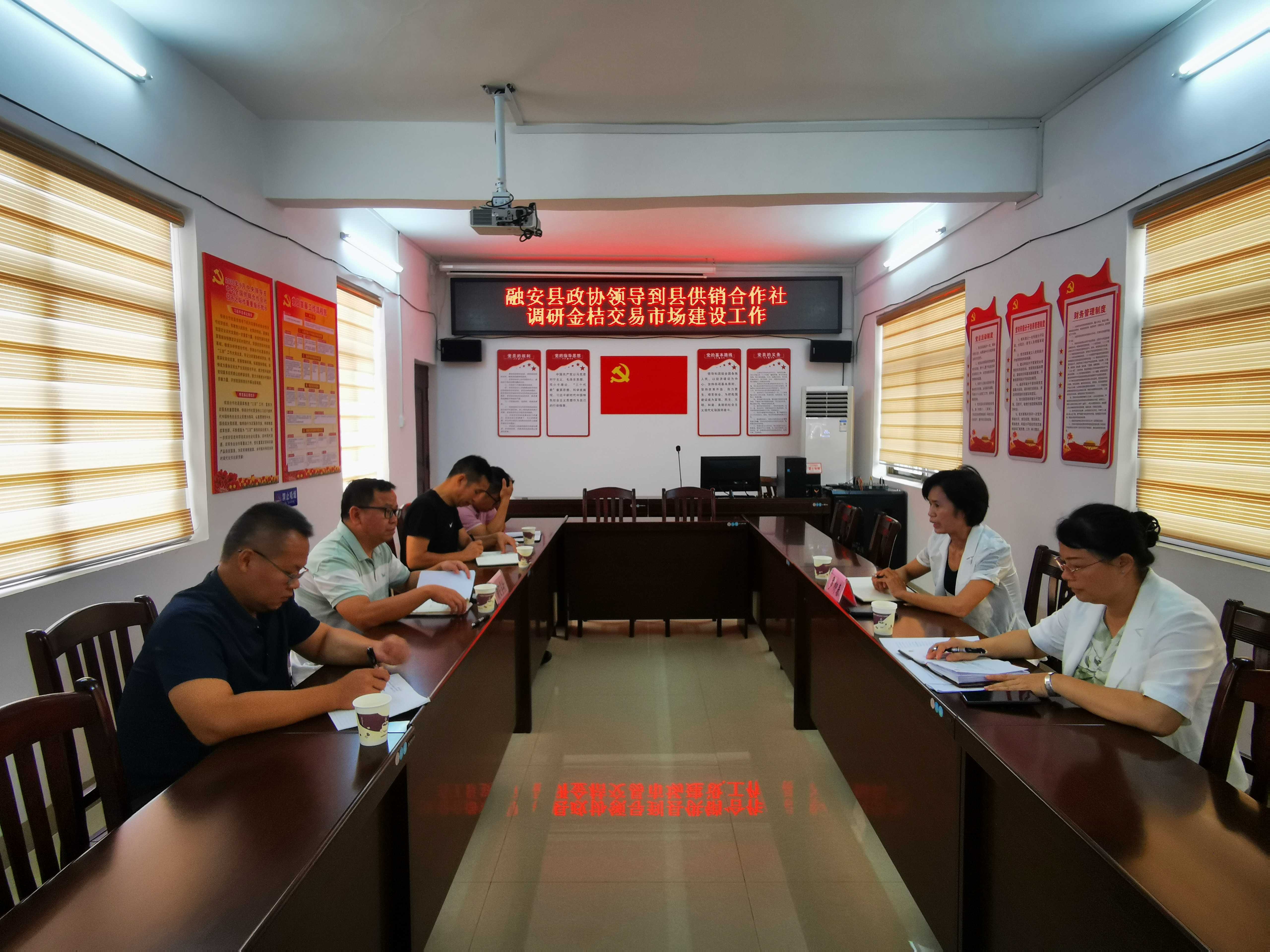 7月17日上午,融安县政协副主席罗柳春到县供销合作社调研金桔交易市场建设工作,通过座谈交流的方式,了解金桔交易市场建设进度、存在困难和问题等情况,并提出指导意见。