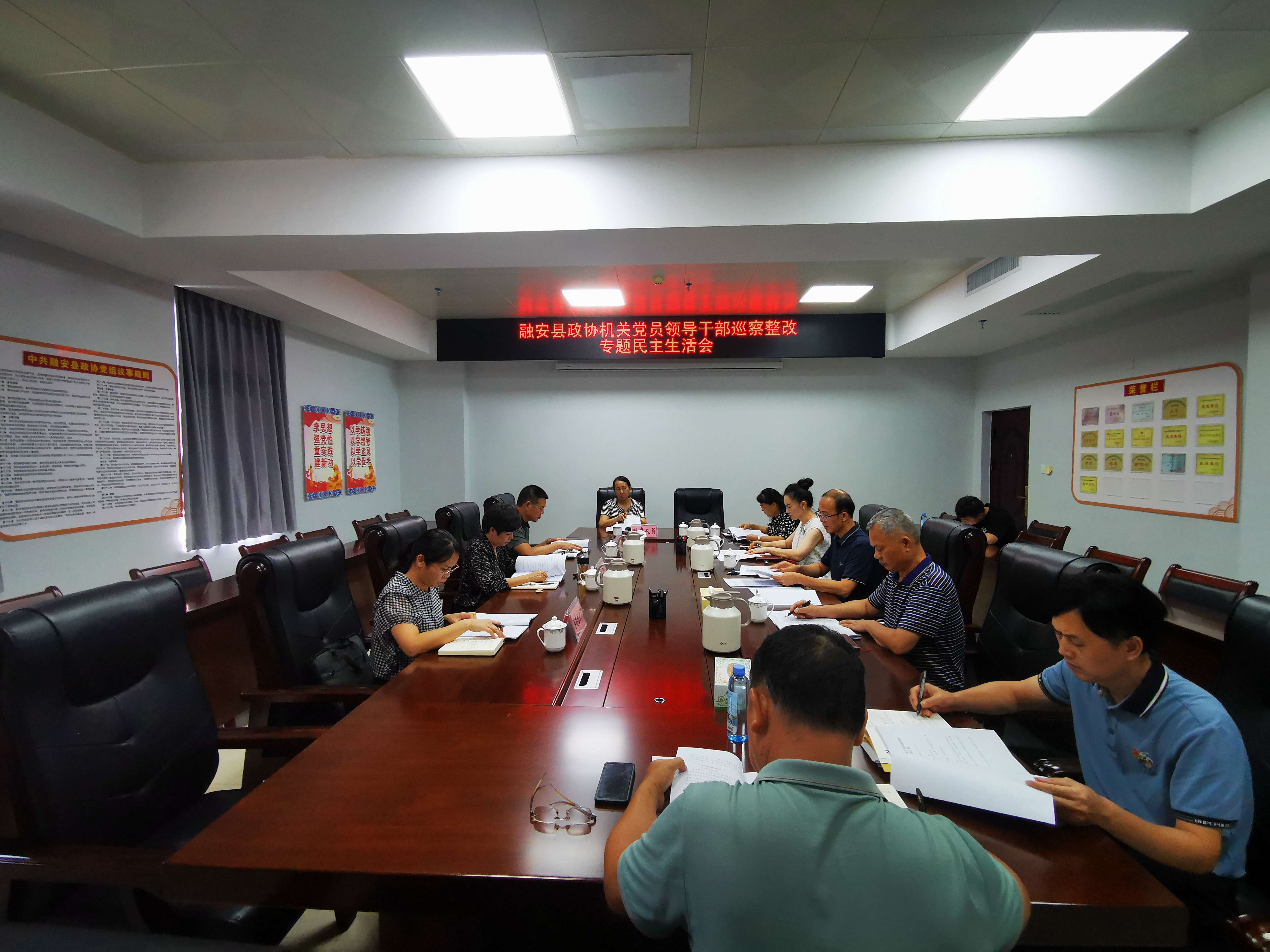9月11日下午,召开融安县政协机关党员领导干部巡察整改专题民主生活会。县政协机关党员领导干部认真开展对照检查、相互批评。县政协主席、党组书记吕素华同志出席会议并讲话,强调要运用好本次民主生活会的成果,以严实的作风加强自身建设,扎实推动巡察反馈问题整改落地见效,推动新时代政协工作提质增效,为融安经济社会高质量发展贡献政协智慧和力量。