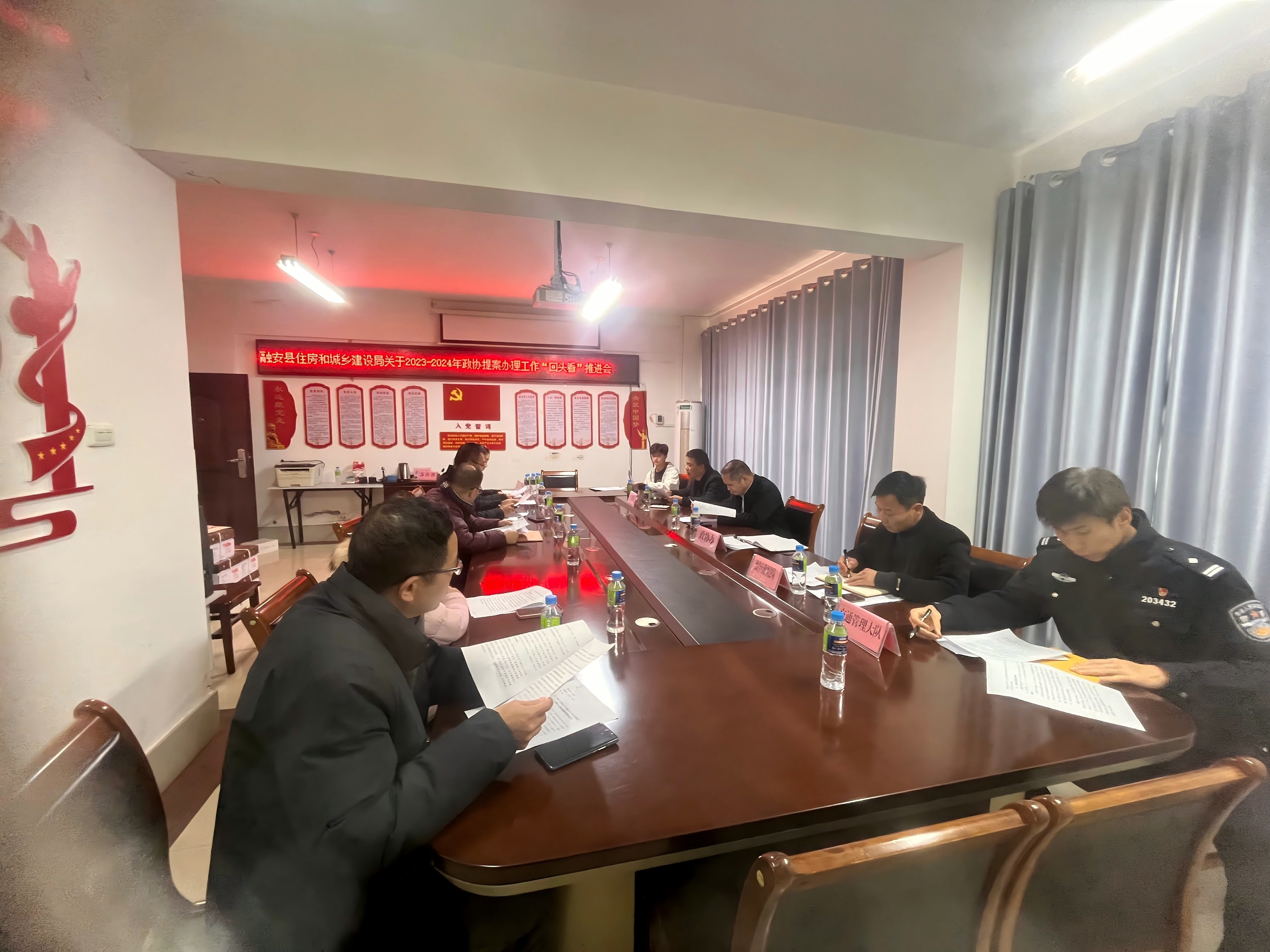 12月10日下午,融安县政协副主席潘兴阳到县住建局调研座谈,就《关于将长安镇东方上城小区分区管理后主干道纳入市政道路管理的建议》《关于治理209国道广西壮象木业公司至融安爱心医院路段安全隐患的建议》两件提案开展“回头看”。在听取承办单位办理提案工作通报后,潘兴阳对承办单位办理实效给予肯定,并就下步工作提出要求,承办单位要持续压实责任、紧盯薄弱环节,细化整改举措、健全长效机制,切实把提案办理成果转化为破解民生难题、提升治理效能的实际成效,确保提案落地见效、惠及群众。