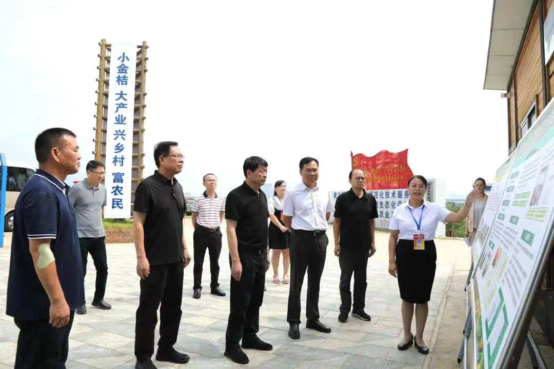 8月30日,在融安县金桔苗木基地,柳州市政协主席陈鸿宁(左三)听取负责人介绍,融安县政协主席梁太福(左二)陪同调研。(蒋阳阳 摄)