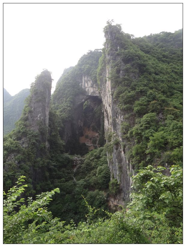 石门奇观早已耳闻,笔者十三年前曾呼朋唤友来此探幽,当时此处尚是荒山野沟,砍柴人指了个大致方向,我们一行人既不知具体的路在那,也搞不清石门景色到底如何,误打误撞,猛然一道巨大石壁挡住去路,往脚底一看,巨大深渊就在跟前!但觉幽暗处丝丝凉风往上袭来,依稀听到水流的声音,摸索着往下探行,才发现,这是一处四面绝壁的巨大凹陷,数十米深的穴底流淌着一道百十米长的地下暗河,潺潺流水声在空旷的地穴间回荡,捧水到手上,透心的清凉,外面是七月酷热的天气,地穴里宛如冰室般清凉。出水的洞穴依稀能看到尽头,但见水从高处跌下,溶洞一边出水一边吐雾,水带着寒气流向下游,远远望去,黑幽幽的入水口犹如一副张开的巨嘴吞噬着无尽的暗流……水急洞深,不敢贸然深入,憾然离去。