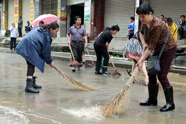 连日来,融水县境内普降暴雨,融江河水位暴涨,县城内多条街道被洪水淹没。6月10日上午洪水退去,县政协响应县委、县政府的号召,全体行动,积极投入洪水退后淤泥清扫工作。
