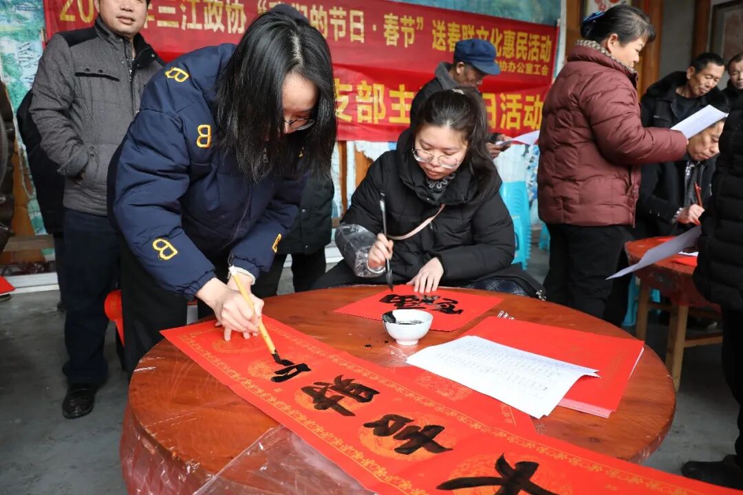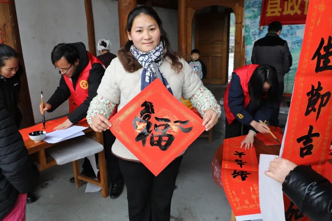 此次活动是县政协深化“我为群众办实事”实践、推进文化下乡的重要举措。活动现场,政协委员及书法协会会员围绕新春祝福、乡村振兴、民族团结等主题,为村民书写赠送春联100余副、福字200余个。