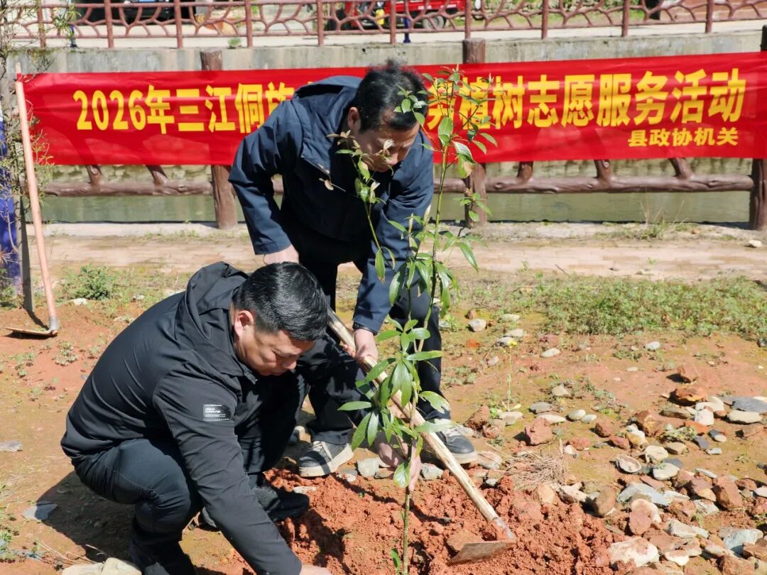 春和景明,万象更新。3月12日,县政协机关组织干部职工前往林溪镇,积极参与三江侗族自治县2026年植树造林活动,以实际行动为侗乡大地增添新绿、筑牢生态屏障。