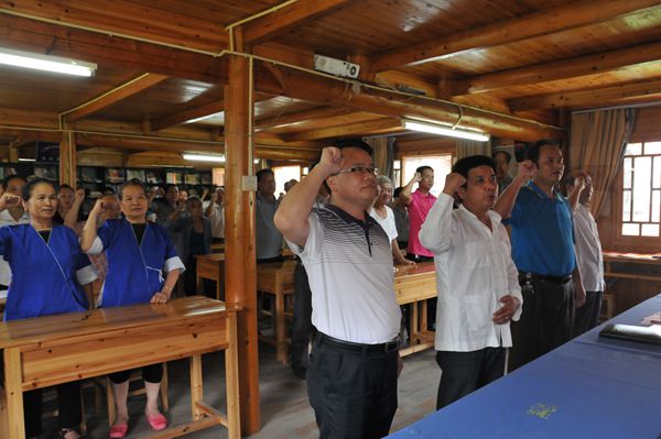 为热烈庆祝中国共产党成立93周年,进一步贯彻落实党的群众路线教育实践活动精神,严格执行中央“八项规定”和整顿“四风”问题,三江县政协党组、机关党支部于2014年7月1日上午,到联系村林溪乡冠洞村与该村党总支部联合举行了庆“七一”党建活动。