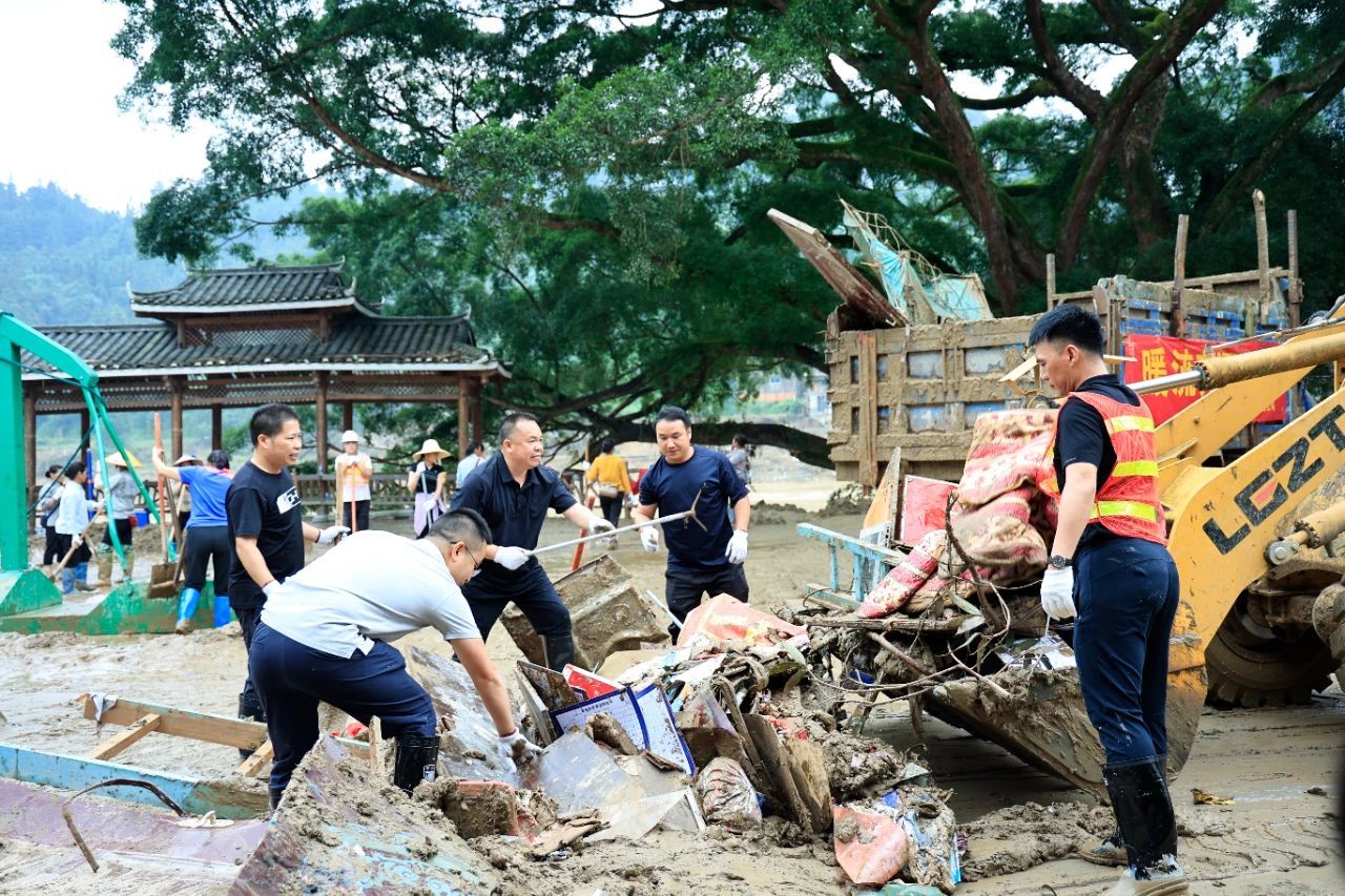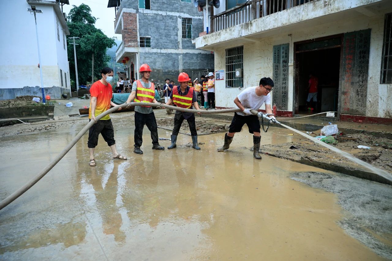 同样的场景6月30日在老堡乡三江口永兴洲上演,政协委员、县消防救援大队教导员李军带领人员冲锋在前,近一米厚的淤泥也挡不住大家的热情,高压水枪、铁铲、锄头一起上,积极为受灾企业排忧解难。还有政协委员、三江县建筑工程总公司赵海良带领员工调配机械台班为梅林乡梅林村清淤……一位位委员,一群群干部群众,大家用实际行动共同谱写着“一方有难八方支援”的赞歌。