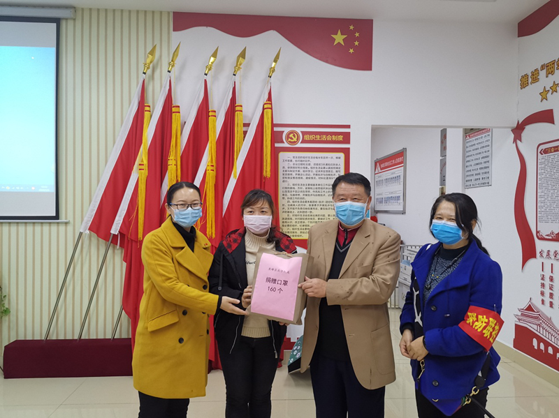 区政协主席戈传祥(右二)向荣新社区捐赠防疫物资