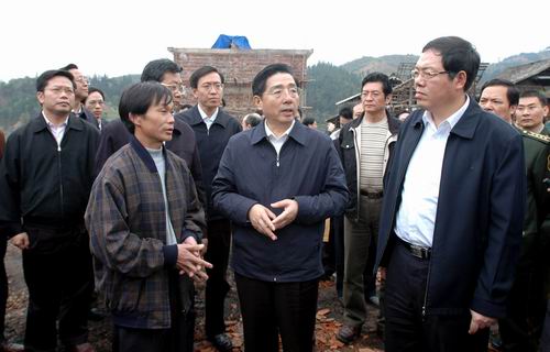 图为郭声琨同志在春节期间遭受过火灾的三江县同乐乡同乐村三转屯了解灾后重建情况。