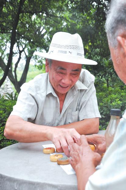 柳侯公园里一位老大爷正在下棋。退休的日子心情好下棋都会赢。(记者 张威 摄)