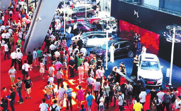 热闹的汽博会现场。(日报记者 黎寒池、邓华/摄)