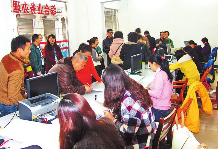 23日上午,柳北区房管所内尽是等待办理交房手续的居民。